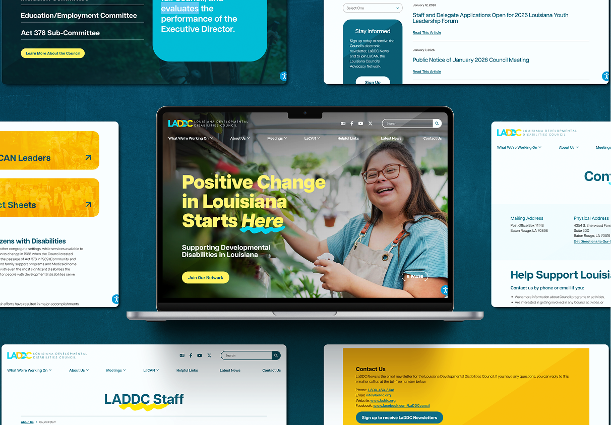 The completed website redesign project equips LaDDC with a modern, inclusive platform that better reflects its mission and enhances public accessibility to council information and resources. By organizing content in a way that supports discovery of advocacy actions, meeting schedules, policy positions, and community resources, the new site strengthens LaDDC’s ability to connect with stakeholders and amplify its impact. This foundational digital infrastructure supports LADDC’s long-term goals of advancing awareness, participation, and systemic advocacy in Louisiana’s disability community.