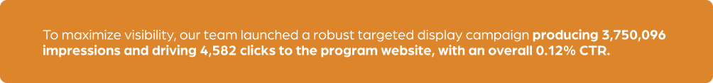 Email marketing played a pivotal role in connecting directly with families. Each month of the campaign, we sent one highly relevant, carefully crafted email, deploying 250,000 targeted emails to inboxes. We delivered messaging that avoided heavy jargon and instead focused on encouragement, support, and clear next steps. These emails were paired with retargeting impressions to extend the campaign’s reach. The targeted emails achieved a 17.05% open rate, well above the 12% goal, and generated 6,313 clicks to the program website, delivering a 2.53% click-through rate (CTR) that surpassed the Gatorworks 2% goal.